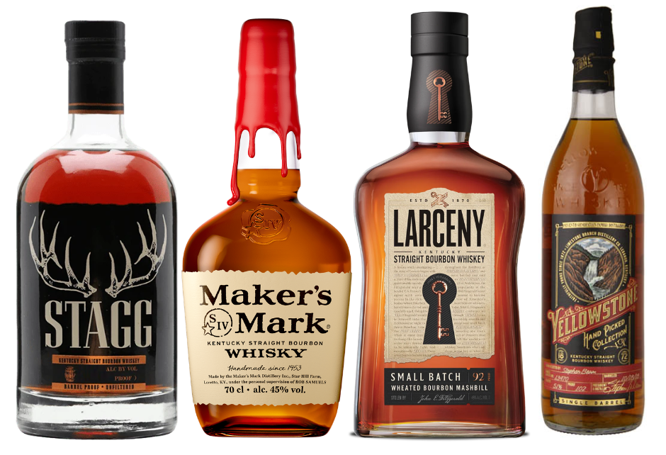 Stagg represents uncompromising strength and concentration, prized for its powerful presence and limited availability. Maker’s Mark delivers its signature wheated bourbon style, known for consistency and approachability. Larceny Small Batch adds a modern wheated expression with broad appeal, while Yellowstone Hand Picked rounds out the collection with a carefully selected bourbon chosen for balance and character.