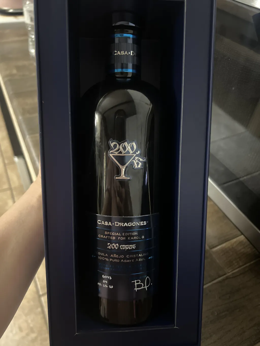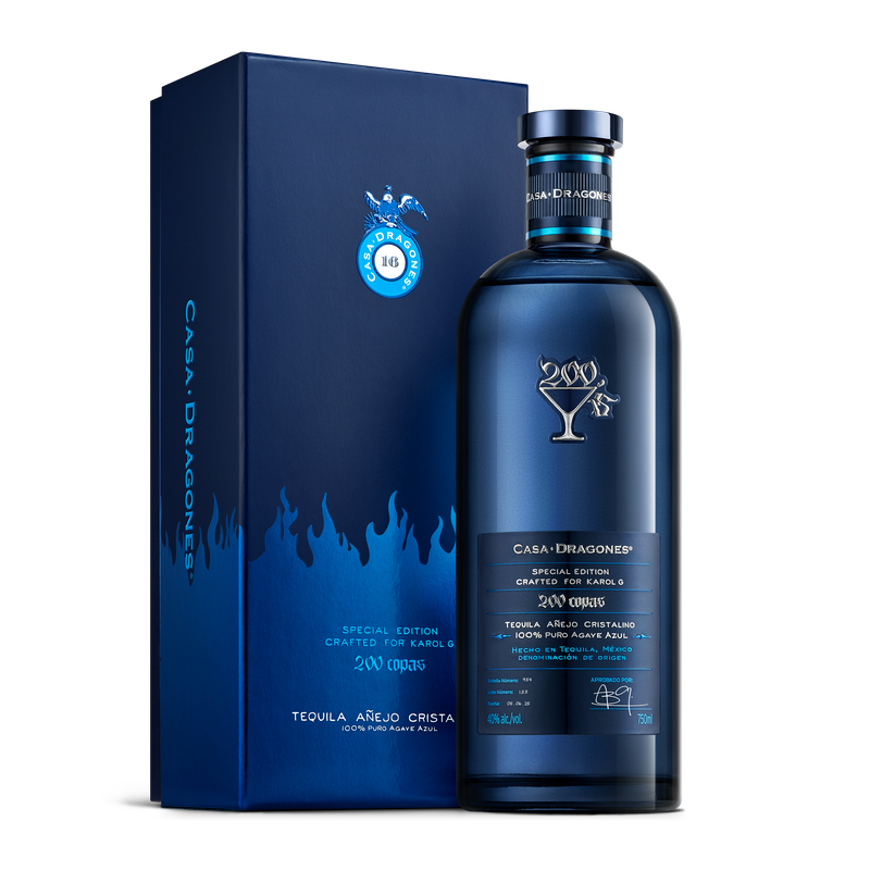 Casa Dragones x Karol G "200 Copas" Añejo Cristalino is a premium tequila collaboration celebrating artistry and craftsmanship. This cristalino expression combines the smoothness of aged tequila with crystal clarity, delivering refined flavors of vanilla, caramel, and subtle oak. Distilled and bottled with meticulous attention to detail, it's an exceptional choice for sipping neat or elevating your favorite cocktails. A limited-edition release that brings together two iconic names in one sophisticated bottle.